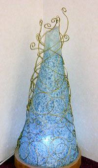 「こんなにきれいな照明があるなんてと、びっくり。いつか私もこのようなものを作れたらと思っていたところ、その作品の作者である先生が、名古屋で『照明塾』を開催すると聞いて、すぐ申し込みました」 そこで半年の基礎コース、一年の講師養成コースを取り、みっちり勉強。しんちゅうの曲げ方、はんだ付け、和紙のデザインなどを本格的に学んだ。同時に照明コンサルタントの資格も取得し、空間に合わせた最適な光度や照度など、照明に関するアドバイザーとしても活躍の分野を広げている。 |